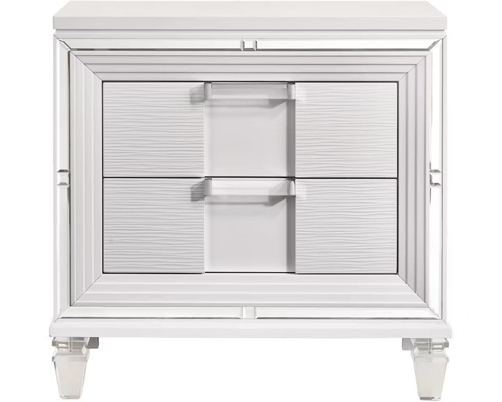 Add a modern touch to your bedroom with Twenty Nine Nightstand! With built-in USB ports and two spacious drawers, this white nightstand combines style and functionality. Keep your devices charged and your bedside essentials organized with this sleek and convenient piece.(USB on back of nightstand)