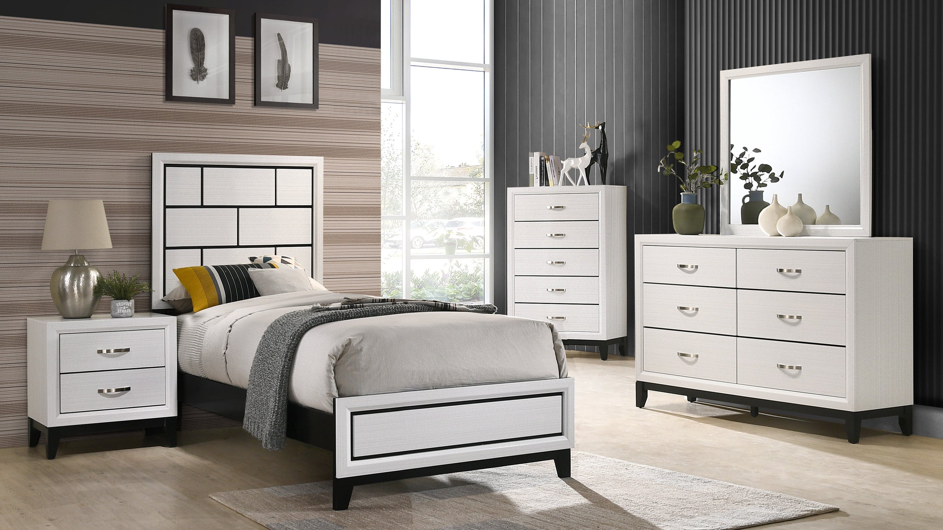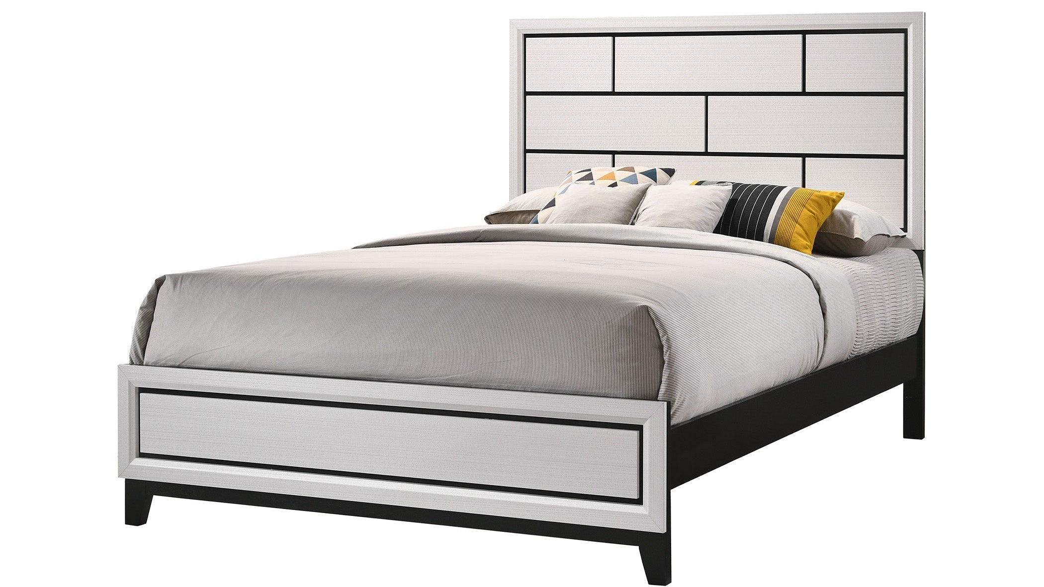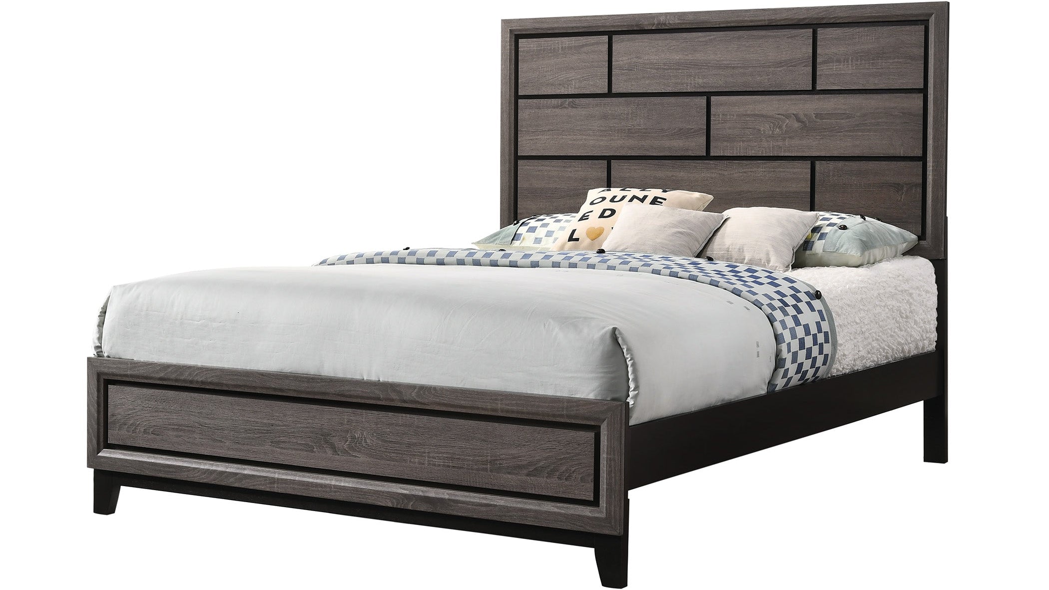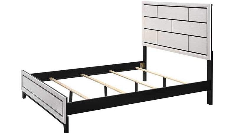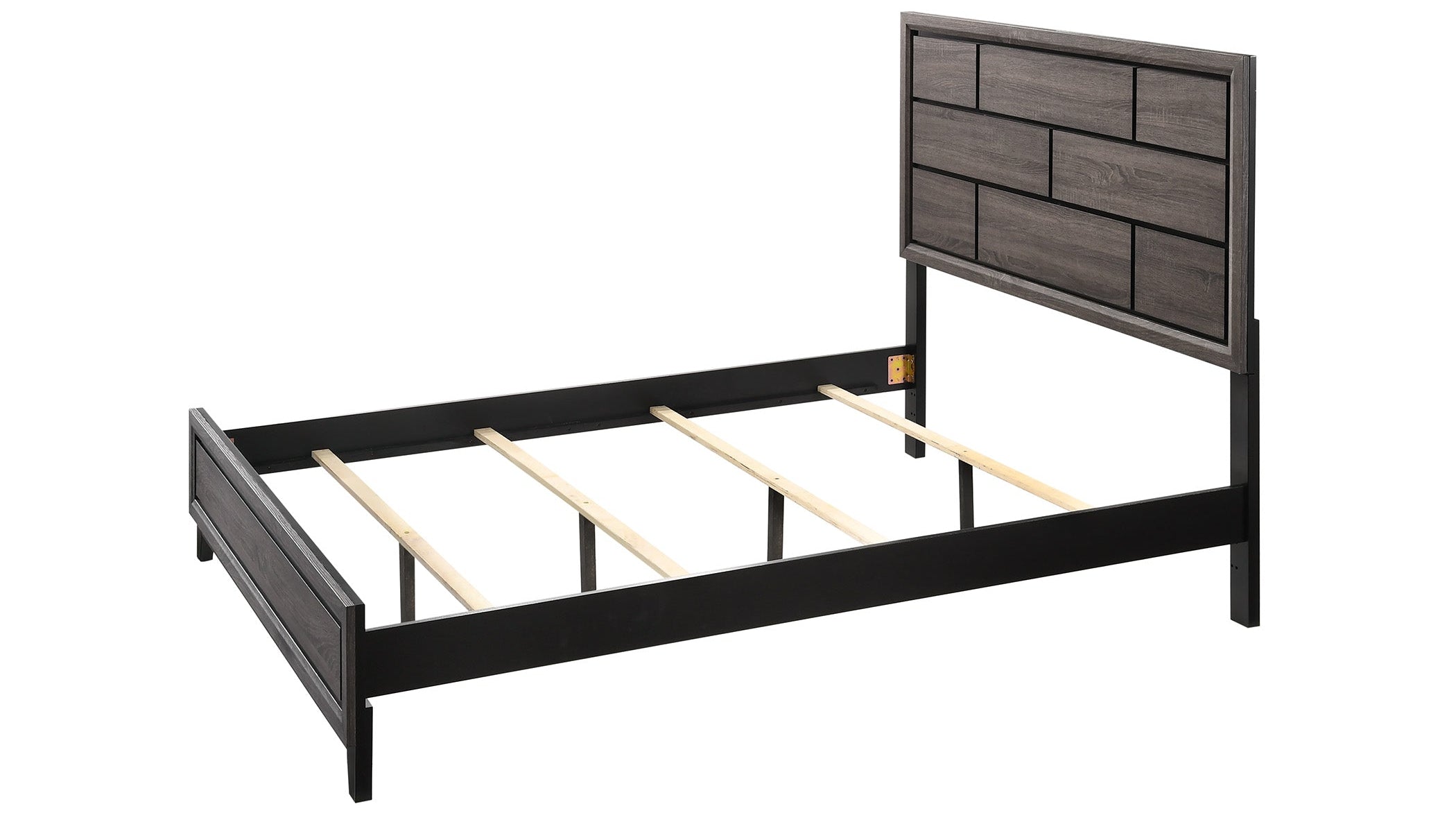 Upgrade your bedroom with an understated style! With beautiful craftsmanship, this Akerson bed is sure to enhance your decor. Sleek, black lines create a pleasing accent to its clean silhouette. A lovely, grey oak or white finish adds a soft, subtle style. Designed for durability, this supportive bed promotes night after night of restful relaxation. Box spring required